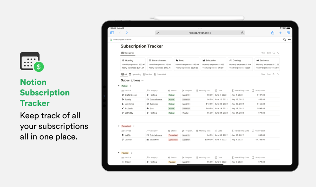 This Notion template helps you keep track of all your subscriptions all in one place.
